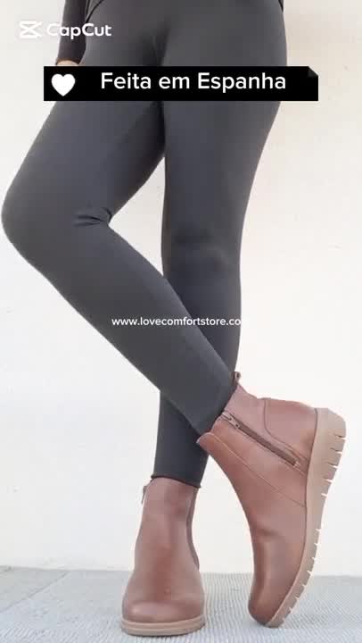 Bota Confortável em Pele Castanha Valeria's