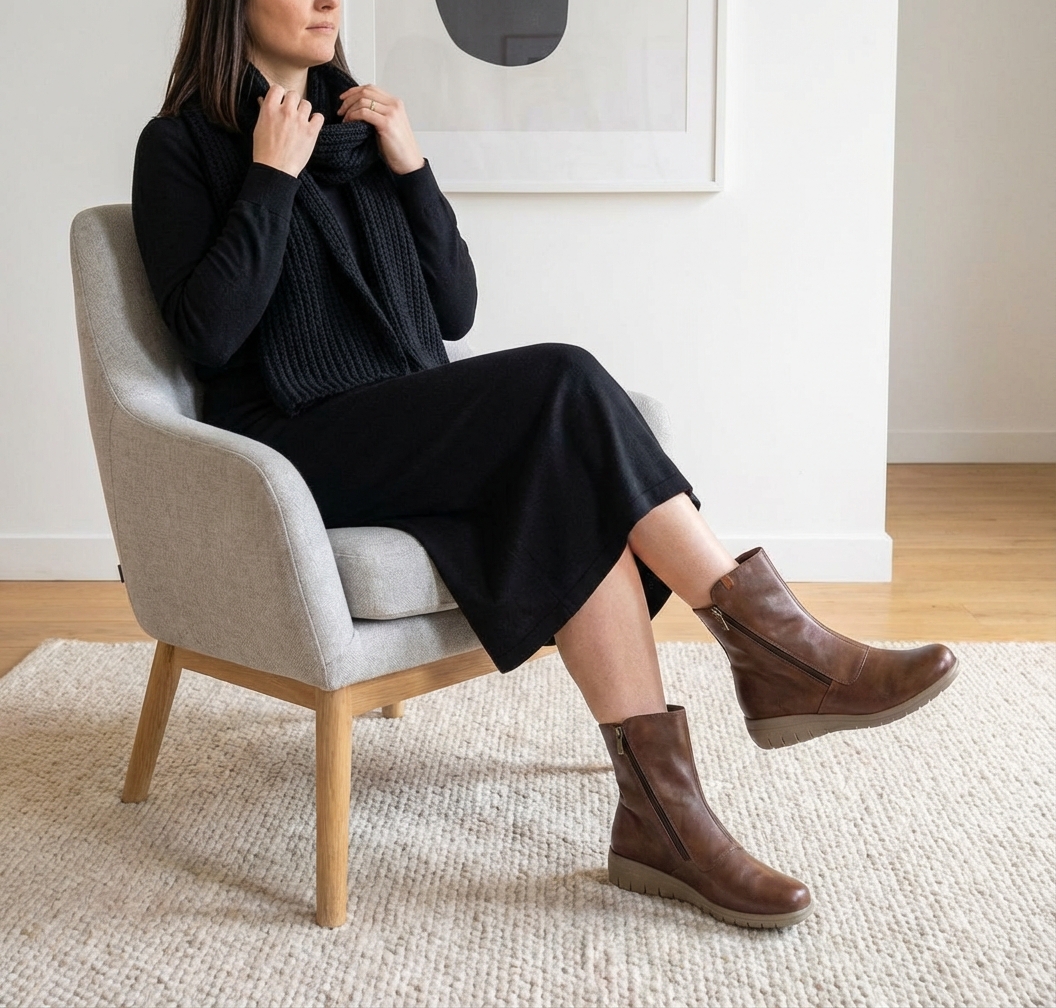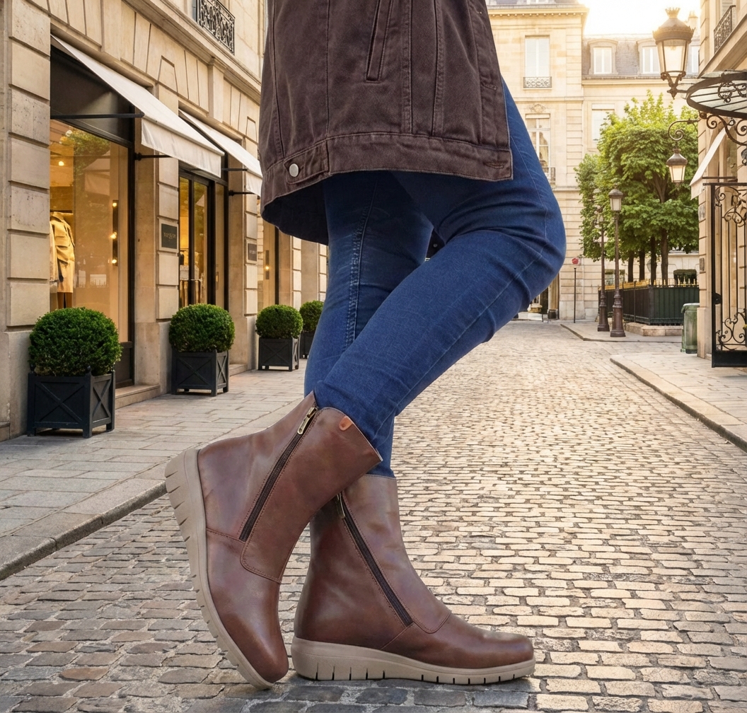 Botas Confortáveis em Pele Média Valeria's