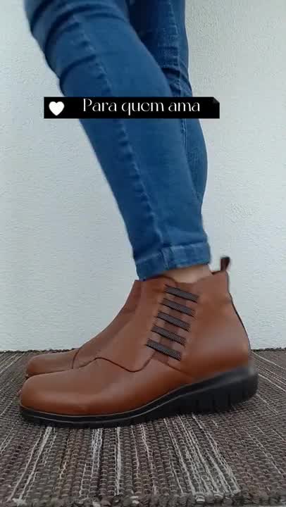 Bota Confortável Pele Elásticos Castanha