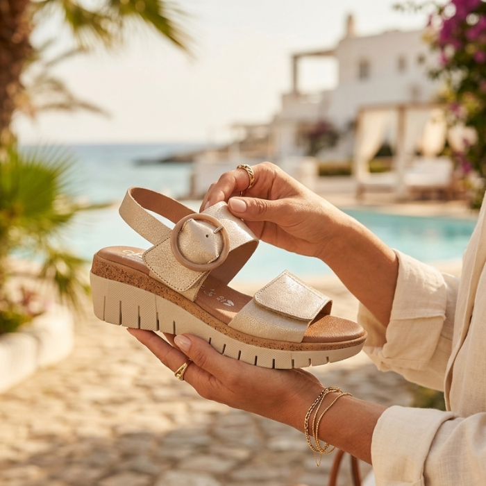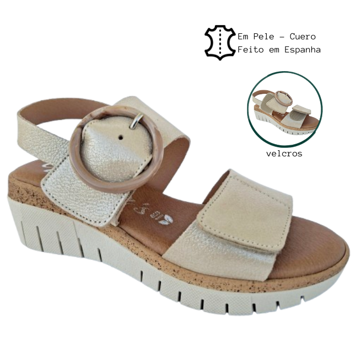 - A parte superior é feita em pele macia e possuem dois velcros que abrem toda a sandália para facilitar o calce.