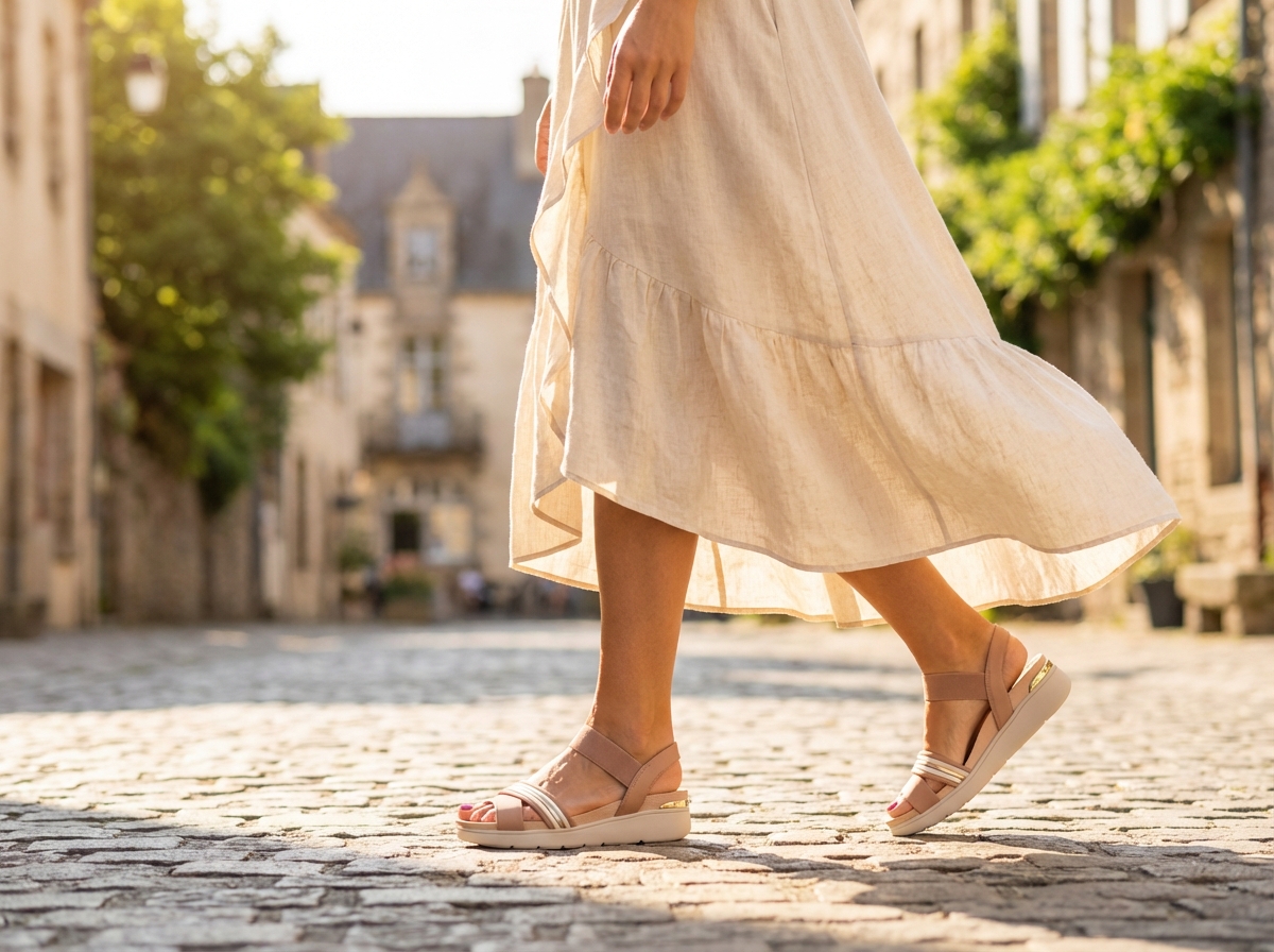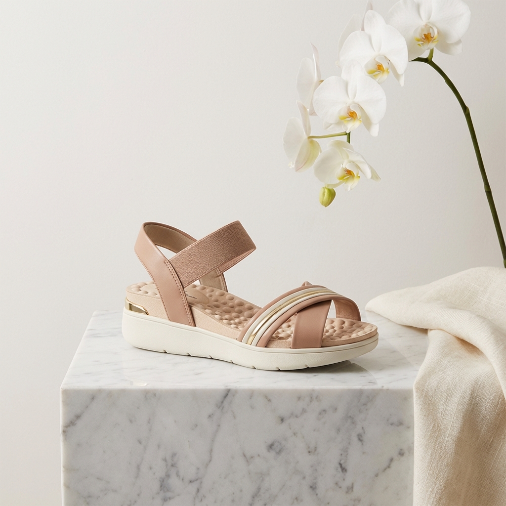 · A parte superior é composta por tiras cruzadas em material sintético de ótima qualidade na parte dianteira e calce em elásticos que se ajustam aos pés sem apertar.