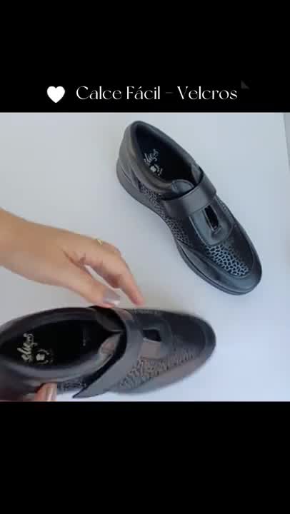 O modelo possui tecnologia que amortece o impacto ao caminhar, calce fácil em velcros e design facilitado para adaptar o calçado à ergonomia dos pés e articulações.